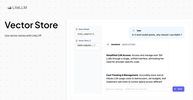 • Fine-grained access control: determine which Keys and Teams can access specific Vector Stores