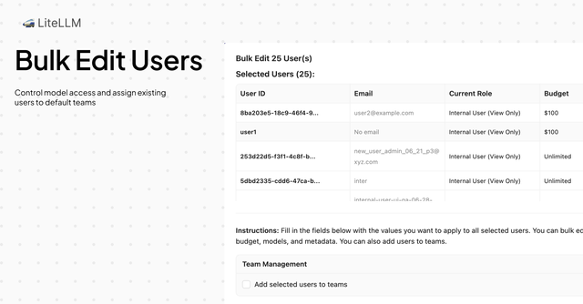 v1.74.7-stable introduces Bulk Editing Users on the UI. This is useful for: