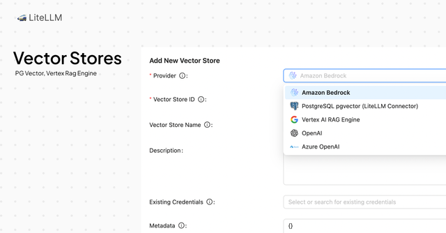 • Vector Stores - Support for Vertex RAG Engine, PG Vector, OpenAI & Azure OpenAI Vector Stores.